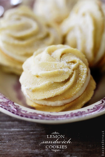 1. Spread a teaspoon and a half of filling on underside of one lemon spritz cookie and place a second lemon spritz cookie bottom side down on top of filling.