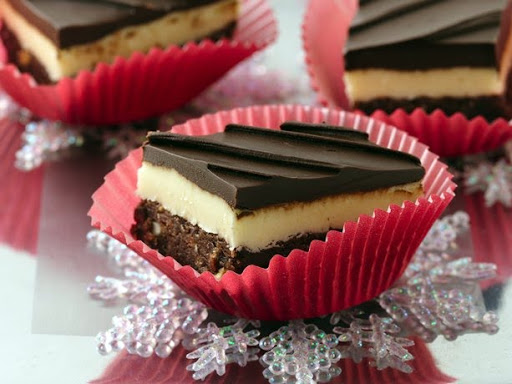 Canadian legend claims that the bar (chocolate crumb-base, layer of vanilla, covered in chocolate) originated in Nanaimo, Canada, in the 1950s. Although unsubstantiated, the story is that a local housewife submitted the recipe under the name "Nanaimo Bars" for a recipe contest