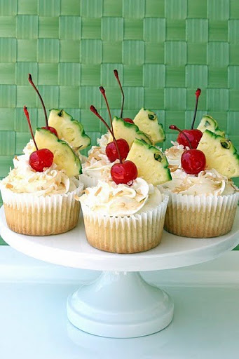 Decorate cupcakes with fresh pineapple, maraschino cherries or paper umbrellas.