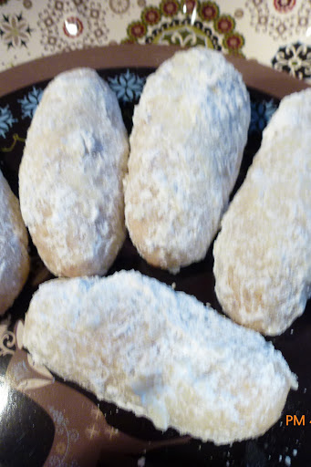 Immediately roll warm cookies in powdered sugar and place on wire rack to cool