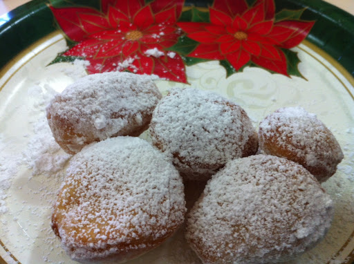 Slide dough slowly into the oil to avoid splattering and deep fry until they puff up and are golden brown, 3 to 5 minutes. Carefully remove onto a rack with paper towels underneath and allow to cool until you can handle them. Place in a clean paper bag with confectioners' sugar and shake gently until covered generously or, use a sifter to dust the beignets with powdered sugar.
