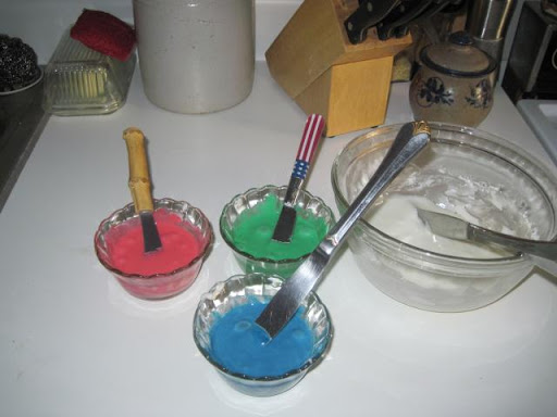 Melt butter in sauce pan; add vanilla, and milk. Add sifted confectioner's sugar to mixture. The consistency will be thinner than cake icing. Dip desired amount of icing into small bowl to mix with desired food coloring. Use your imagination! Spread onto cooled teacakes and let dry overnight.