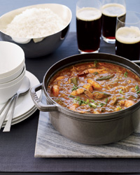 Notes Filé powder is made from ground, dried sassafras leaves. It is available from cajungrocer.com.
