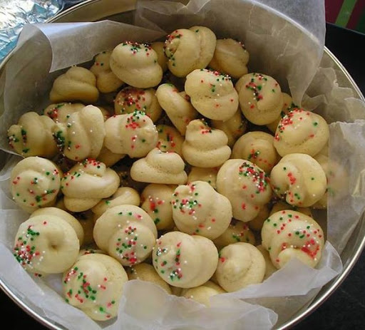 Knead and add flour as needed to keep dough from sticking to hands. Pinch off dough, roll in your hands to form a log and then twirl into shape. Place on greased cookie sheets. Bake at 375 for 10 minutes.