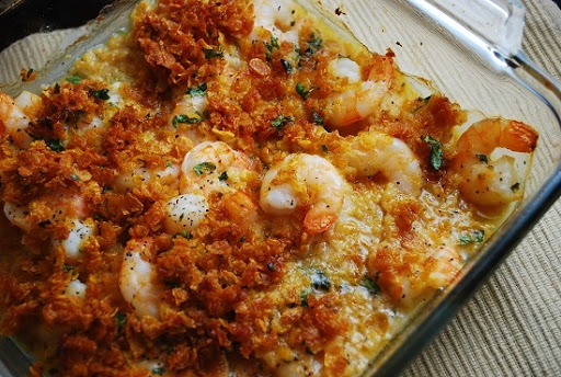 Sprinkle cornflakes mixture over shrimp. Transfer to oven and bake until shrimp are pink and cooked through, about 10-12 minutes.