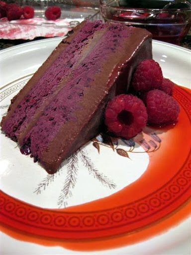 Pour a third of this chocolate mixture into the springform pan and swirl until it is evenly distributed. Place into the freezer for 30 minutes, or until solid. Once it is solid, place the ice cream into a large food processor and add the black raspberries. Process until all the raspberries are broken up and distributed through the ice cream evenly. Spread half of the ice cream evenly on top of the chocolate, then place into the freezer for 15 minutes or until hard. Store the remaining ice cream in the freezer. Once the torte layer is solid, pour on another third of the chocolate mixture and swirl until evenly distributed. Freeze 30 minutes, then add the remaining chocolate and freeze an additional 15. Finally, add the remaining chocolate on top and freeze for at least 6 hours.