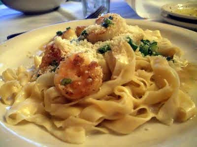 After completing steps 1 through 3, combine the alfredo sauce, shrimp and mushrooms. Ladle on top of fettuccine or linguini.