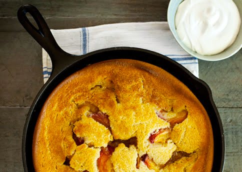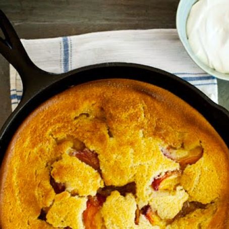 Add batter to pan. Scatter fresh peaches over, then spoon dollops of preserves evenly over batter. Bake until a tester inserted into center of cobbler comes out clean, 45-50 minutes. Let cool slightly. Meanwhile, whip cream in a medium bowl to form soft peaks. Fold in sugar and remaining 1 cup crème fraîche. Cut cobbler into wedges and serve with whipped cream mixture.