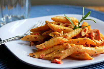 Then add the cooked pasta, cream and cheese to the tomatoes. Toss until well combined. Serve with additional cheese if desired.