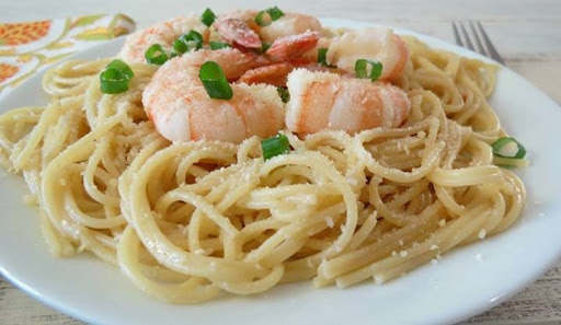 3.Once shrimp is cooked add lemon zest, lemon juice and 1 tablespoon of butter. Stir, until combined, once butter is melted add scallions and cooked pasta. Toss to coat. Sprinkle with Parmesan cheese.