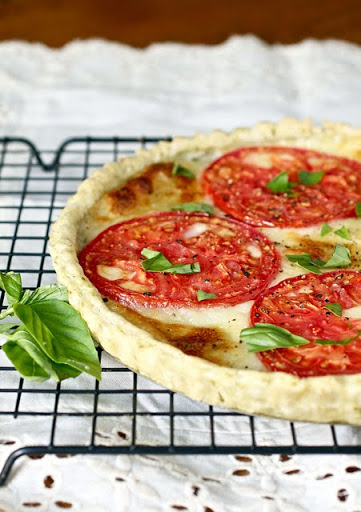Fresh Tomato Mozzarella Tart with Basil Garlic Crust
