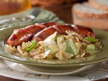 In a large skillet, heat oil over medium-high heat; saute onions and cabbage until very soft and light brown.