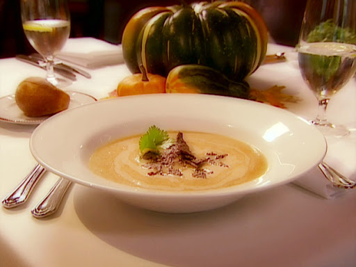 In a large saucepan, melt the butter and sweat the garlic and onions. Raise the heat to high and add the stock and sweet potatoes. Bring to a boil and let simmer for 30 minutes.