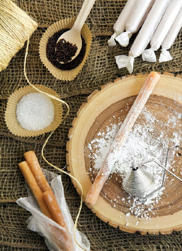 6. Roll the candy in powdered sugar and dust off excess. Wrap each candy in a layer of plastic wrap, then in a wax paper length with the ends twisted. This helps it keep its shape.