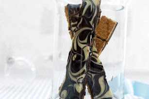 MELT white chocolate as directed on package. Drop spoonfuls over semi-sweet chocolate; swirl gently with knife.
