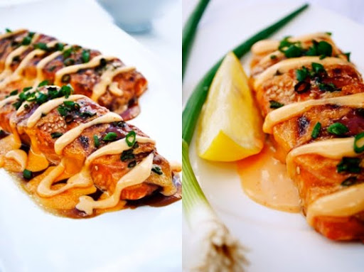 Stuffed Teriyaki Salmon with Sirache Sauce