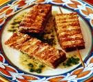 Arrange the hot mozzarella sandwiches on a warm platter or plates and pull the skewers from them. Spoon the sauce over and around the sandwiches and serve.