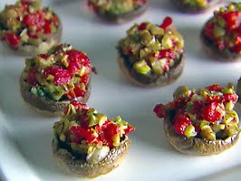 On a parchment paper-lined baking sheet place the mushrooms, cavity side up. Spoon the filling into the cavity of the mushrooms. Bake until the mushrooms are tender, about 20 minutes.