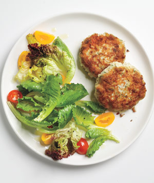 ¼ teaspoon pepper. Add the salad greens and toss to combine. Serve with the fish cakes.