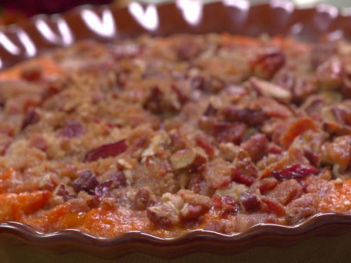 For the topping: Mix together the brown sugar, pecans, flour, butter and bacon in a separate bowl until it looks crumbly.