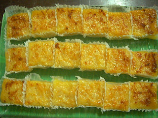 After 45 minutes of baking, pour 1/2 can of condensed milk on top of cassava cake and spread.