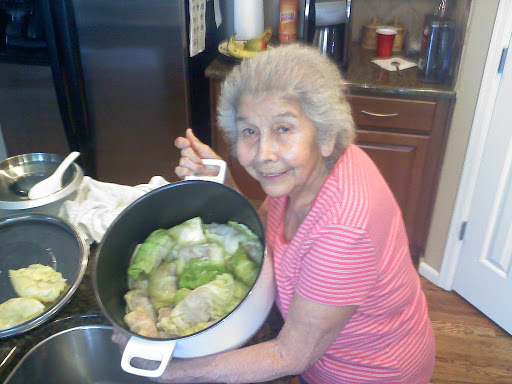 Core cabbage & place in boiling water. As they cook, pick the leaves away from the head & drain.