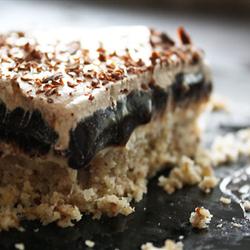 Prepare chocolate and vanilla (or pistachio) puddings with milk as per package directions. Allow pudding to set before pouring on top of the cream cheese layer.