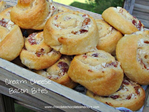Unroll crescent rolls onto a cutting board. Pinch seams together, or buy the new sheet crescent dough. Spread cream cheese mixture over top of crescent dough. Be sure to get all the way to the side edges, wouldn't want any of the rolls short changed on the good stuff.