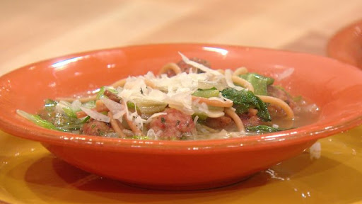 Mini Meatball Soup with Broken Spaghetti and Escarole