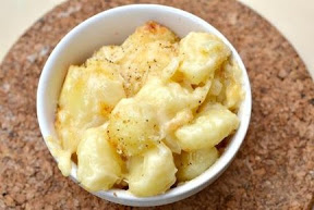 Pour cheese mixture over the gnocchi. Sprinkle with Parmesan cheese, breadcrumbs and parsley.