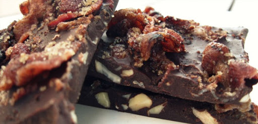 Combine the bacon and nuts. Remove bacon from the oven and pour the contents of the nut bowl on the sheet. Using a rubber spatula, stir and fold the bacon and nuts together until every thing is coated. Spread out into one layer on the sheet. Place back in the oven for 15 more minutes, stirring and spreading again halfway through.