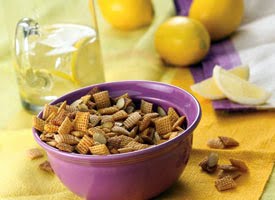 2. In microwavable measuring cup, microwave butter uncovered on High about 40 seconds or until melted. Stir in sugar and lemonade concentrate. Microwave uncovered on High 30 seconds; stir. Pour over cereal mixture, stirring until evenly coated. Microwave uncovered on High about 5 minutes, stirring every 2 minutes, until mixture begins to brown.