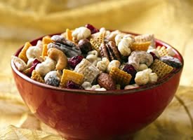 5. In serving bowl, mix both cereal mixtures and cranberries. Store in airtight container.