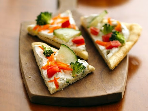 4 In small bowl, mix cream cheese, sour cream, dill and garlic powder until smooth. Spread over crust. Top with vegetables. Serve immediately, or cover and refrigerate 1 to 2 hours before serving. Cut into 8 rows by 4 rows.
