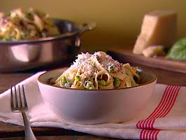Tagliatelle with Smashed Peas, Sausage, and Ricotta Cheese