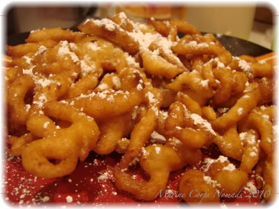 3. Place batter in a squeeze bottle; slowly squeeze batter into hot oil. (Try going in a spiral pattern and then criss-cross over the spiral. It may not work, but it’s what I try to do.)