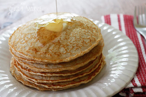 Heat a large skillet on medium heat. Lightly spray oil to coat and pour 1/4 cup of pancake batter. When the pancake starts to bubble, you may add your fruit/chocolate chips if you wish. When the bubbles settle and the edges begin to set, flip the pancakes.