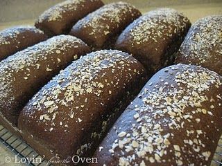 Divide into 8 piles, cover with plastic wrap and allow to rest for 5 minutes. Shape into loaves and roll in cornmeal. Place on greased cookie sheet or greased 2.5x5 mini loaf pans. Rise 20 minutes or till doubled, about 20 minutes.