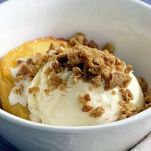 3. Top each peach half with a 1/2-cup scoop of frozen yogurt and a sprinkle of crumbled gingersnaps (if using). Serve immediately.