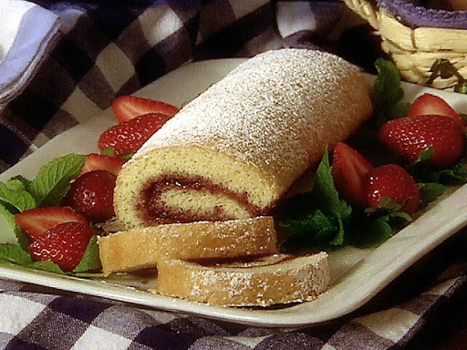 Remove the plastic wrap from the pan and slide the cake onto a clean kitchen towel sprinkled with confectioners sugar. Spread the filling over the cake and leave in about 1 inch from the edge. Starting at a long end of the cake, use the towel to lift the cake from underneath. Tuck the edge and peel away the towel as you go, roll tightly away from you. Transfer the cake to a serving platter. Top with confectioners sugar.