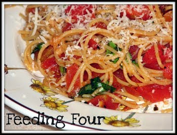 Heat olive oil in med skillet over med-high heat. Add onion, garlic, salt, pepper and red pepper flakes; cook and stir 1 minute. Add tomatoes, tomato sauce, chicken broth, lemon juice and basil. Cook and stir about 7 minutes. Toss pasta, cheese and serve
