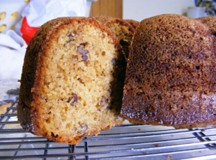 In a separate bowl, mix together Flour, Sugar, Salt, Cinnamon, Baking Powder and Baking Soda, Pudding Mix, and (optional) Nuts. Add to the liquid mixture and stir well.Pour into Bundt pan, muffin pan (makes approx 48) or 2 greased 9x5 in. loaf pans.Bake at 325 for 1 hour (30 Mins for muffins) , or until cooked thoroughly.