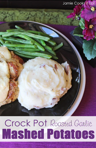 7. When your potatoes are fork tender, remove the tin foil from the crock pot, open it and smash the roasted garlic with a fork. Add half of it to back into the crock pot. If you want more garlic taste, you can add a bit more after everything is mixed together and you have a chance to taste it. Best to start with a little bit first. :)