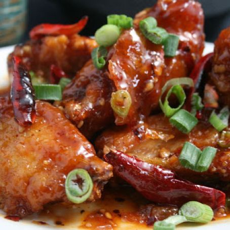 Chicken Wings: Discard the milk and let wing section drain until just damp. Heat oil in a large cooking pot. (350ºF or use the bread test) Roll wings in starch and deep fry until golden brown then drain.