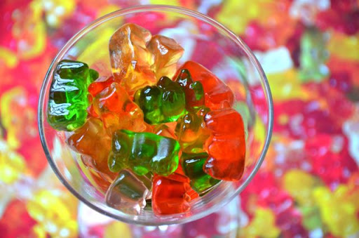 Place gummy bears in a baking dish, cover with vodka. Leave in the refrigerator for a week.