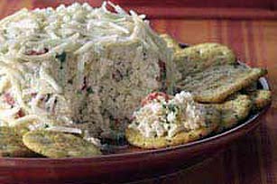 UNMOLD crab spread onto serving plate. Sprinkle with the remaining mozzarella cheese; press into crab spread to secure. Serve with the crackers.