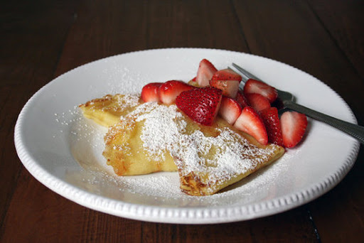 Crêpes suzette is one of Julia's most notable preparations of dessert crepes, but the sauce is pretty heavy and the dessert crepes themselves are already saturated in butter. For a lighter, fresher topping to complement the buttery crepes, try marinating strawberries (or another fruit) in orange liqueur and granulated sugar. The orange liqueur adds an indescribable depth and richness to the berries without weighing down their fruity, ripe flavor. It's about time you swallow any trepidation, pull out that nonstick pan, and start making Julia's crepes now.