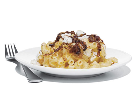 Spread pasta mixture in prepared dish. Top with shallots, then goat cheese. Sprinkle with pepper. Bake until heated through, about 15 minutes.