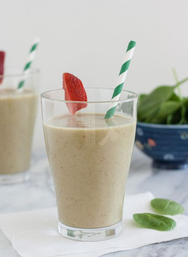 In a blender, combine all of the ingredients. Blend until smooth. Serve immediately or save the second serving to enjoy later in the day.