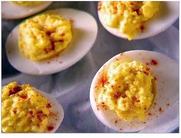 Evenly disperse heaping teaspoons of the yolk mixture into the egg whites. Sprinkle with paprika and serve.